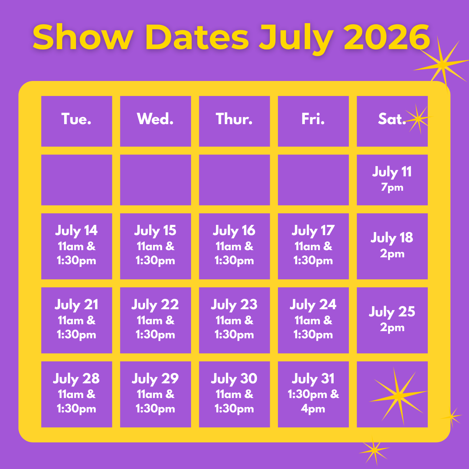 It’s been a couple of years but our summer production is finally back and ready to welcome all our families and our groups!