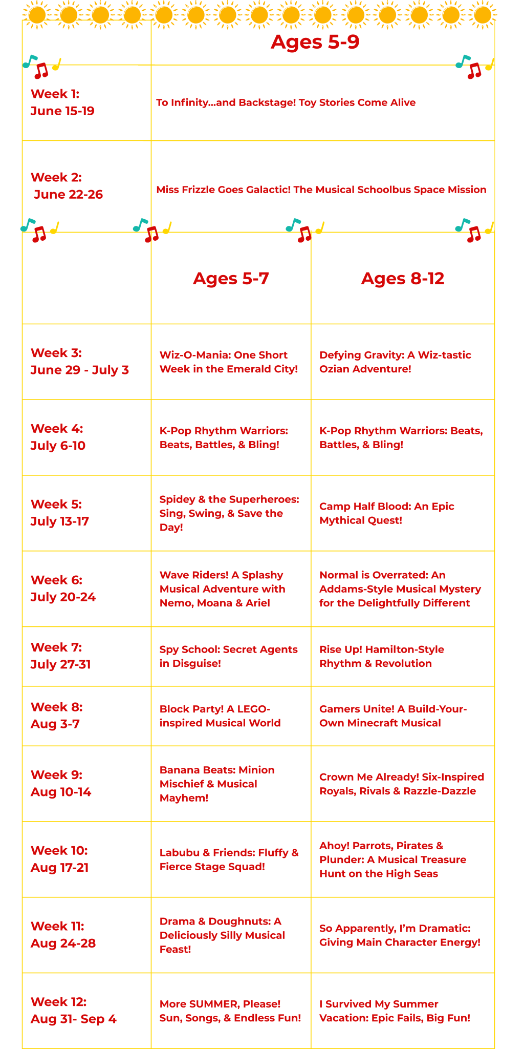 - Brand-New Themes – From superheroes to secret agents, Minecraft realms to the Emerald City, and K-Pop dance-offs to rap revolutions, there’s something for everyone! Minion mischief, Addams antics, pirate peril & royal rivalries will ignite imaginations & inspire bold adventures all summer long!